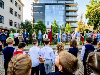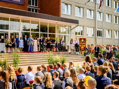 Rīgas domes priekšsēdētājs Oļegs Burovs Zinību dienā sveic Rīgas 13. vidusskolas, Rīgas 64. vidusskolas un Rīgas Teikas vidusskolas skolotājus un audzēkņus.