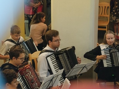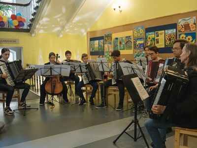 “Nāc un piedalies” pasākumā varēja vērot koncertu foajē, kurā piedalījās vijoļspēles pulciņa audzēknis Gerhards Vētra, bērnu jogas grupa “Bindu”, akordeonistu ansamblis “Opuss”, meiteņu koris “Rīga”, koklētāju ansamblis “Austriņa”, meiteņu kamerkoris “Tonika”, koris “Accolada”, folkloras kopa “Kokle”, pūtēju orķestris un noslēgumā - koru kopdziesmas.