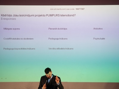 Rīgas skolu vadība, pedagogi un atbalsta personāls tiekas Eiropas Sociālā fonda projekta “Atbalsts priekšlaicīgas mācību pārtraukšanas samazināšanai” (PuMPuRS) noslēdzošajā konferencē “Sadarbība. Virziens. Atbalsts”, lai dalītos savā pieredzē par projekta gaitā iegūtajām atziņām.