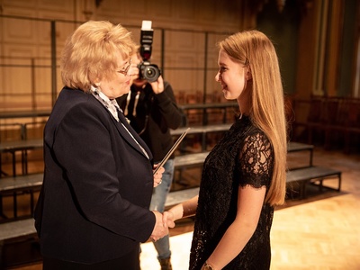 Savukārt Rīgas domes balva „Zelta stipendija” 1138.30 eiro apmērā piešķirta galvaspilsētas skolu absolventiem par izcilām zināšanām un augstiem sasniegumiem pilsētas, valsts un starptautiskās mācību priekšmetu olimpiādēs un zinātniski pētniecisko darbu konkursos. Šogad „Zelta stipendiju” saņēma 18 Rīgas izcilākie skolu audzēkņi: