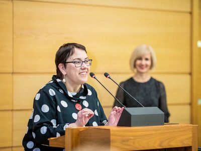 20. decembrī Rīgas domes priekšsēdētājs Mārtiņš Staķis aicināja balvu "Zelta pildspalva" un "Zelta stipendija" ieguvējus Rātsnamā, lai pateiktos par ieguldīto darbu un personīgi apsveiktu gan pedagogus, gan skolu absolventus. Svinīgajā pasākumā piedalījās Izglītības, kultūras un sporta komitejas priekšsēdētāja Iveta Ratinīka.