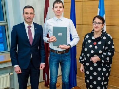 Šogad atšķirībā no citiem gadiem pasniegta arī veicināšanas balva – pateicības raksts Rīgas 71. vidusskolas dizaina un tehnoloģiju skolotājam Gvido Bērziņam.