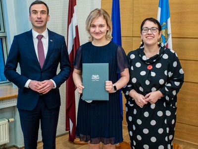 Tikmēr Rīgas domes “Zelta stipendijas” 1200 eiro apmērā šogad saņem galvaspilsētas 20 izcilākie skolu absolventi. 11 no tiem bija Rīgas Valsts 1. ģimnāzijas absolventi: Rolands Lopatko, Līva Oliņa, Mārtiņš Marks Kozlovs, Kārlis Kristofers Krūmiņš, Edgars Rūdolfs Vītiņš, Anna Frolova, Jānis Jurkāns, Anna Mikuleviča, Diāna Lismane, Viesturs Spūlis un Ilmārs Štolcers. Stipendijas saņem četri Rīgas Valsts 2. ģimnāzijas absolventi: Jevgēnijs Lazebņiks, Linda Melānija Bergmane, Anna Elizabete Strazda un Klāvs Veseļuns. Balvas tiek arī Ziemeļvalstu ģimnāzijas absolventam Krišam Jānim Dombrovskim, Rīgas Valsts klasiskās ģimnāzijas absolventei Annai Kangro, Rīgas Anniņmuižas vidusskolas absolventam Arsēnijam Kadiševam, Rīgas 71. vidusskolas absolventei Danielai Protasevičai un Rīgas Juglas vidusskolas absolventam Klāvam Kalveniekam.