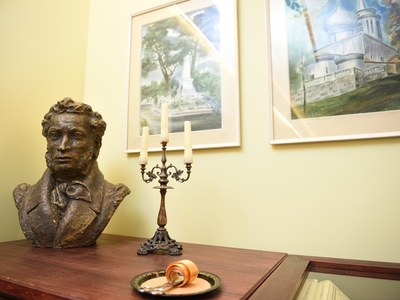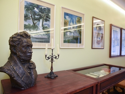 Pēc renovācijas muzejs izvietots divās plašās un gaišās telpās, kur galvenā loma atvēlēta Puškina mīļotās sievietes Annas Kernas krūšutēlam, gan arī paša Puškina bronzas bistei un pat pēcnāves maskai. Tāpat muzejs lepojas ar vērienīgu grāmatu fondu, tulkojumiem, mākslas darbiem un fotogrāfijām no slavenā dzejnieka dzīves.
