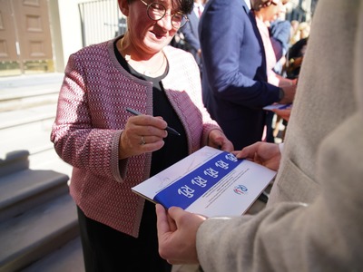 Rīgas Franču liceja direktore Vineta Rūtenberga sacīja: „Šodien, sagaidot Latvijas simtgadi, mēs ar lepnumu un atbildības sajūtu atgriežamies liceja vēsturiskajā ēkā. Mēs esam apņēmības pilni saglabāt šo garu un tradīcijas, lai arī nākamās paaudzes ar mums lepotos.”