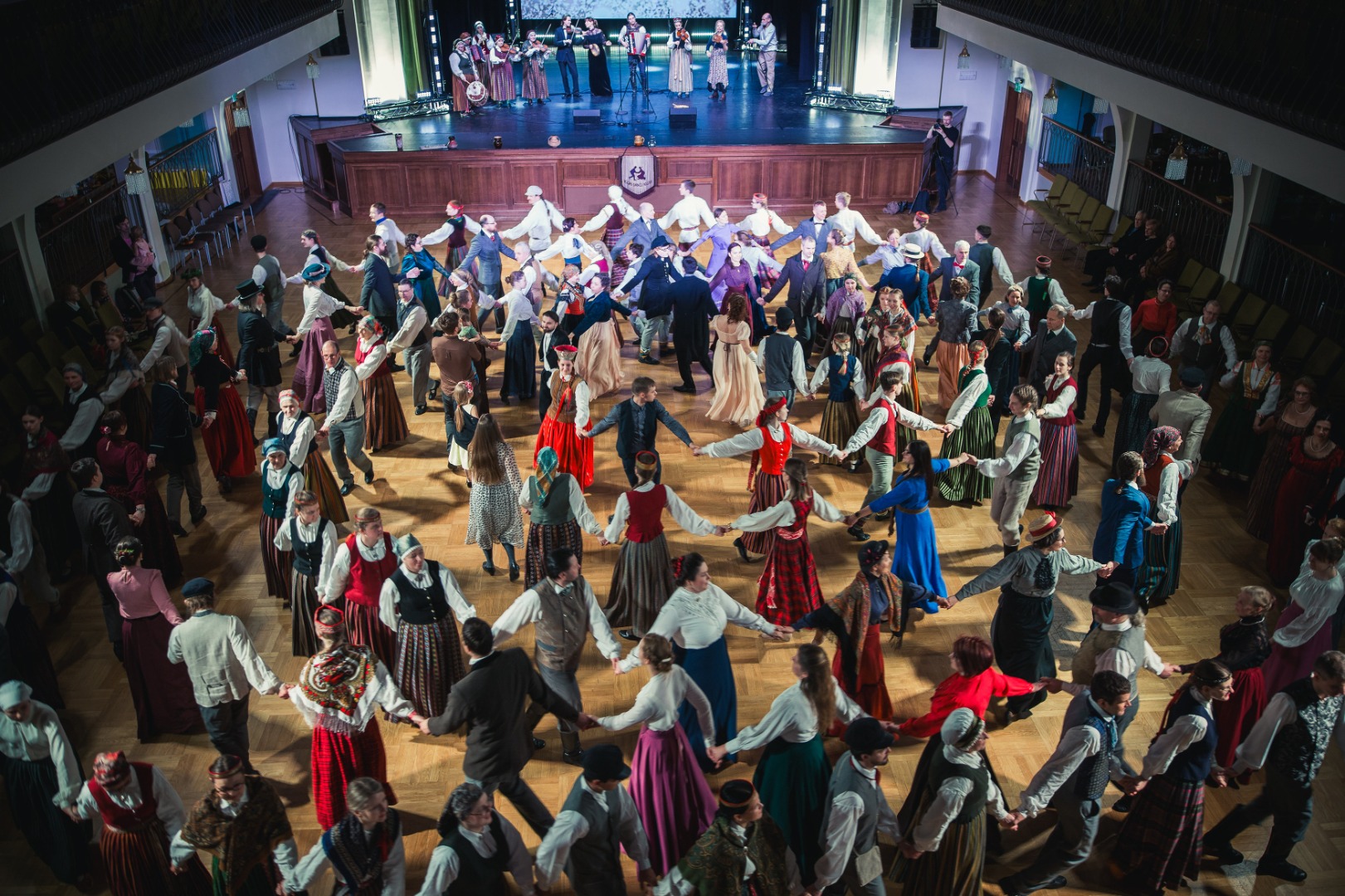 Apģērba etiķete “Danču ballei” – tautastērps, fraka vai 19. gadsimta beigu svētku tērps.