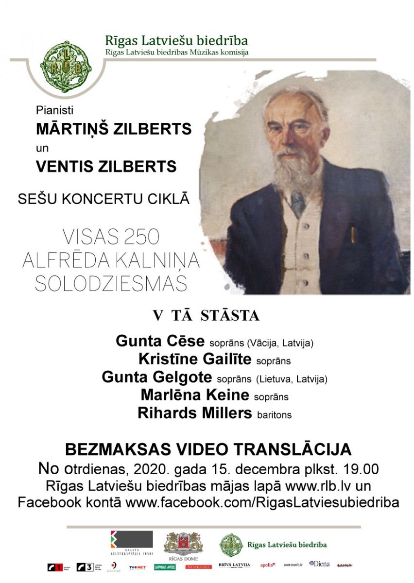 Rīgas Latviešu biedrība aicina uz koncertcikla "Visas Alfrēda Kalniņa 250 solodziesmas sešos koncertos" piektā koncerta "Tā stāsta" bezmaksas video translāciju.