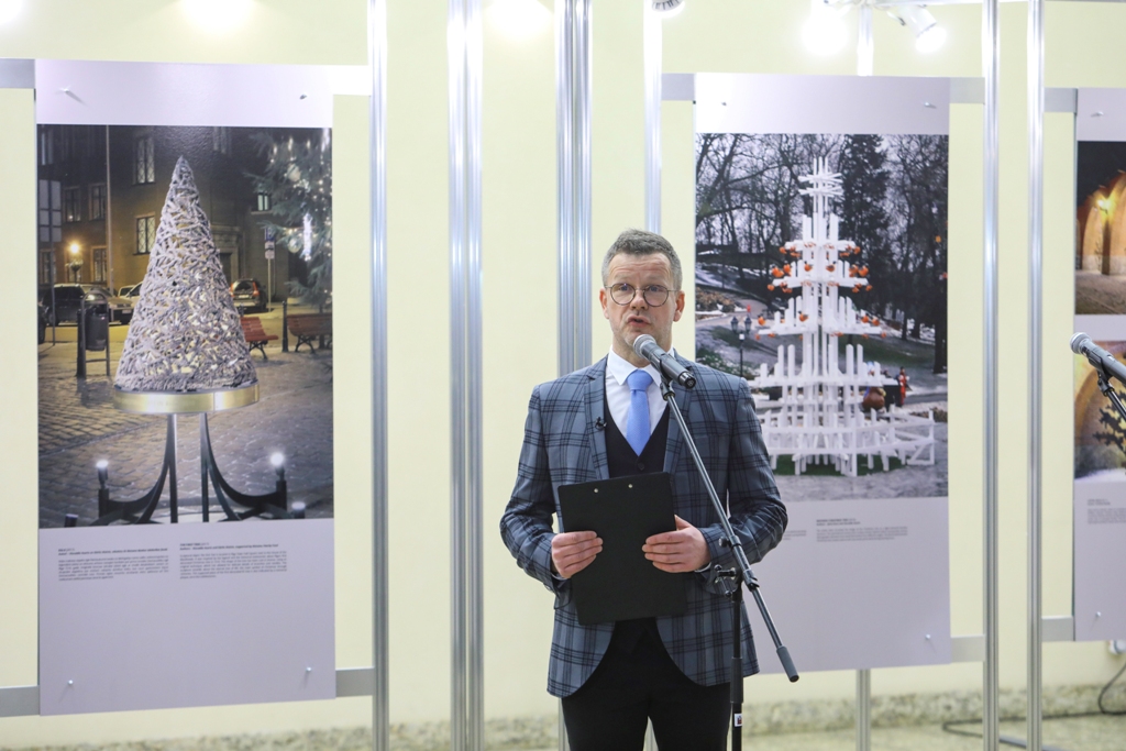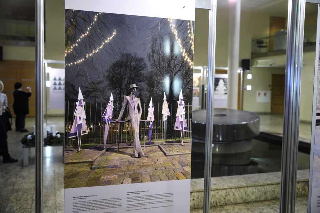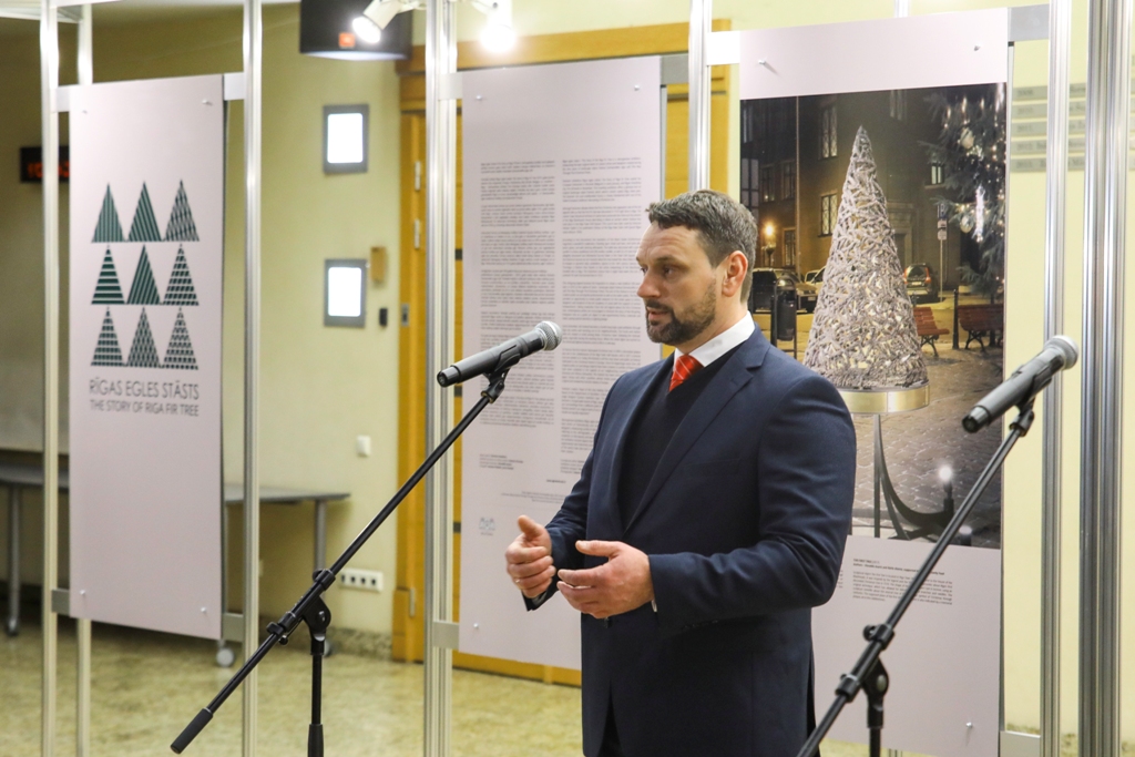 Izstādē "Rīgas egles stāsts" apkopota daļa no vides objektu festivāla iepriekšējo gadu laikā radītajiem interesantākajiem un savdabīgākajiem Latvijas mākslinieku autordarbiem. Par ieceri “Ziemassvētku egļu ceļa” 10. jubilejas gadā atskatīties uz paveikto, izstādes atklāšanā runāja Guntars Kambars, festivāla idejas autors, Rīgas domes Izglītības, kultūras un sporta departamenta Pilsētas svētku noformējuma nodaļas vadītājs: