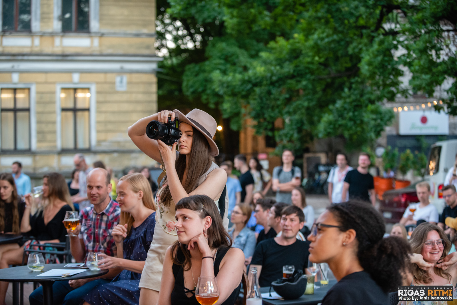 Turpinājās vakars āra terasē, kur laikapstākļu un lieliskas atmosfēras lutinātu jam session vadīja nupat no ilgākas prombūtnes Berlīnē atbraukušais saksofonists Toms Rudzinskis, ieskandinot kultūrtelpas “M/Darbnīca” āra terasi kopā ar tādiem lieliskiem mūziķiem, kā Latvijā dzīvojošais somu pianists Tuomo Uusitalo, kontrabasists Toms Poišs un bundzinieks Ivars Arutjunjans.