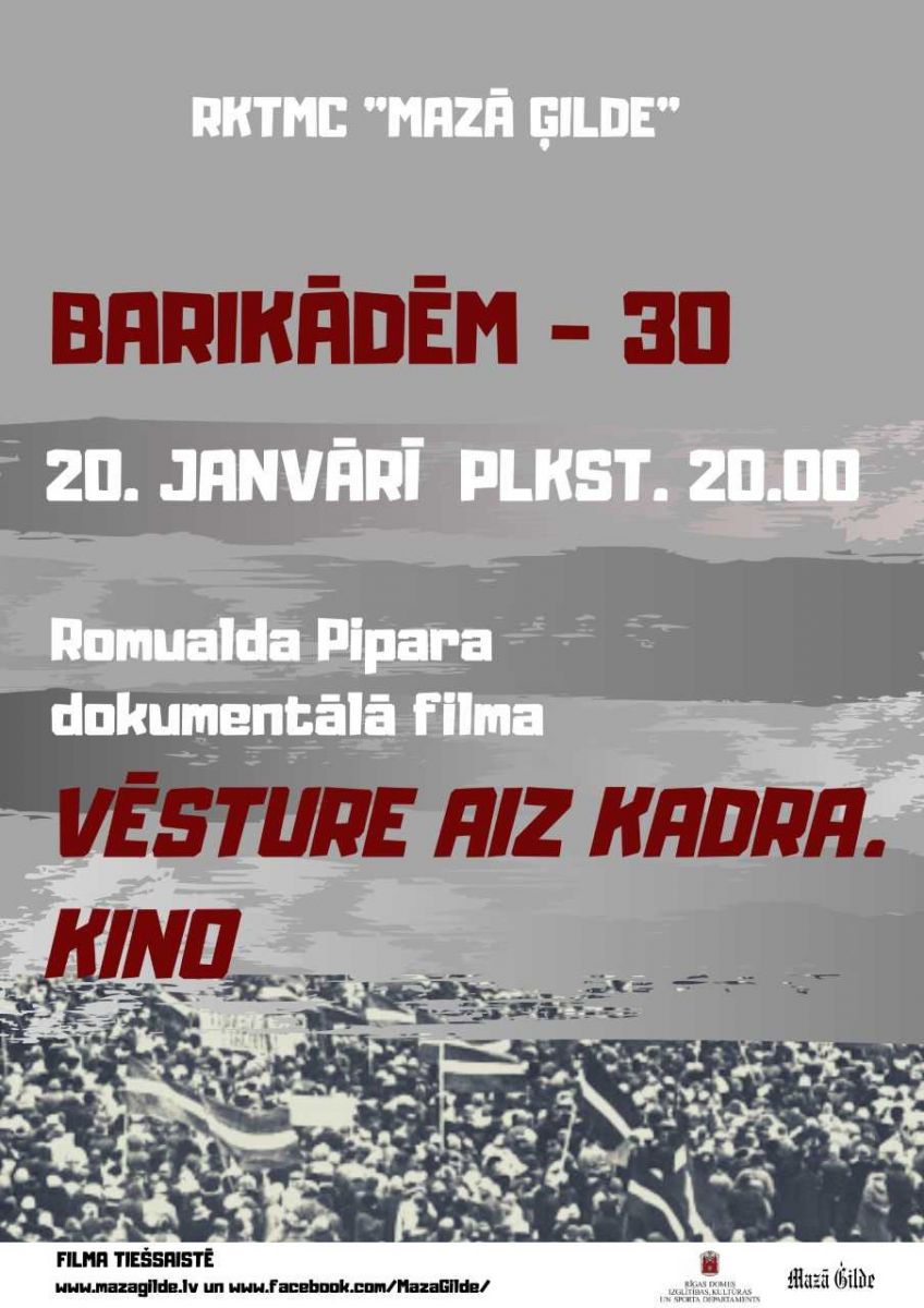 Atzīmējot Barikāžu 30. gadadienu, trešdien, 20. janvārī, plkst. 20.00 Mazā Ģilde piedāvā ikvienam interesentam bez maksas tiešsaistē noskatīties Romualda Pipara dokumentālo filmu „Vēsture aiz kadra. Kino”, ļaujot sajust klātesamības elpu gan 30 gadu senu notikumu aculieciniekiem, gan jaunajai paaudzei.