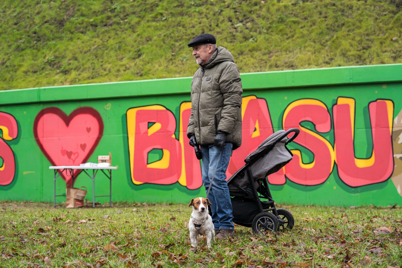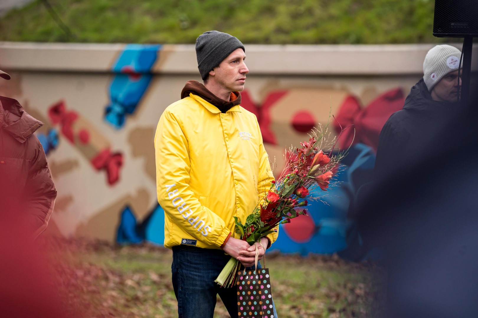 “Jauni gleznojumi pilsētvidē izceļ apkaimju identitāti, palielina lokālpatriotismu un mudina iedzīvotājus iesaistīties apkaimes “kārtības uzturēšanā”. Sienas gleznojumu tapšanā piedalījās seši mākslinieki. Sienas gleznojuma iedvesma aizgūta no nejauša ieraksta sociālajos tīklos Brasas apkaimes grupā: "Brasā viss sākas un viss beidzas jeb ir gan Dzemdību nams, gan vienas pieturas attālumā - Lielie kapi". Pakārtojoties garajam formātam, uz tilta tiek attēlots cikls, kas ir viens gads. Gads var būt gan kā mirklis, gan kā mūžība. Caur ziedu prizmu tiek attēloti gadalaiki, kas tiek simbolizēti caur tik ierastajiem ziediem, kas Brasā sastopami ik uz soļa - Lielo kapu memoriāla zilsniedzītes,” norāda mākslinieks, sienu gleznojumu koncepcijas autors Dainis Rudens.