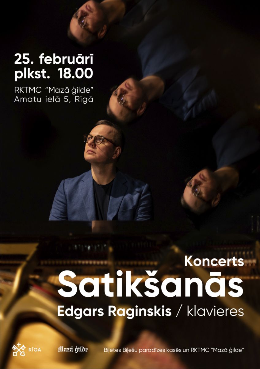 25. februārī plkst. 18.00 RKTMC “Mazā ģilde” Lielajā zālē savas klavierimprovizācijas koncertā “Satikšanās” spēlēs komponists un pianists Edgars Raginskis.