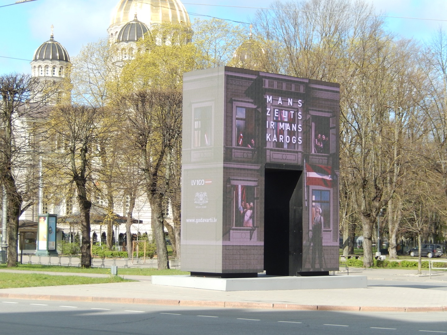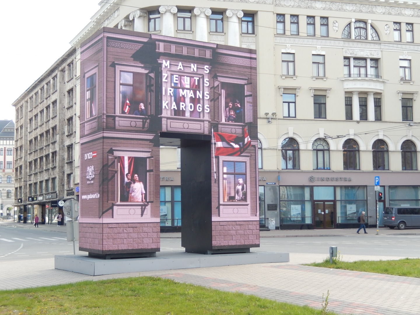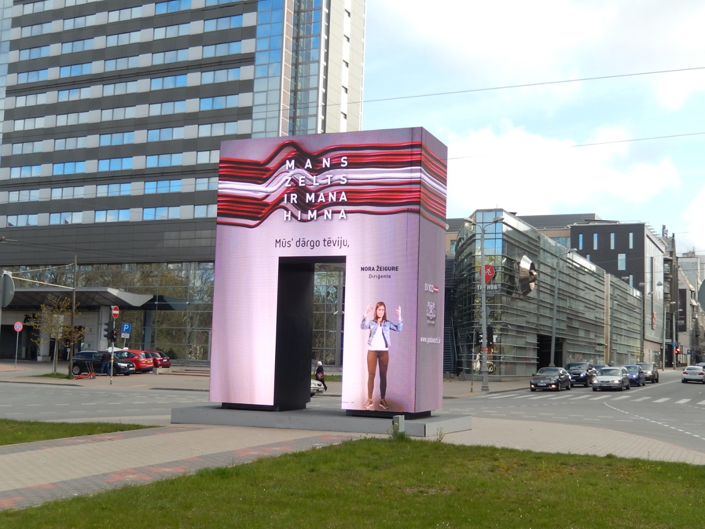 Svētku laikā vides mākslas objekts „Goda vārti” virtuāli vēstīs par Latvijas valsts karogu un himnu.