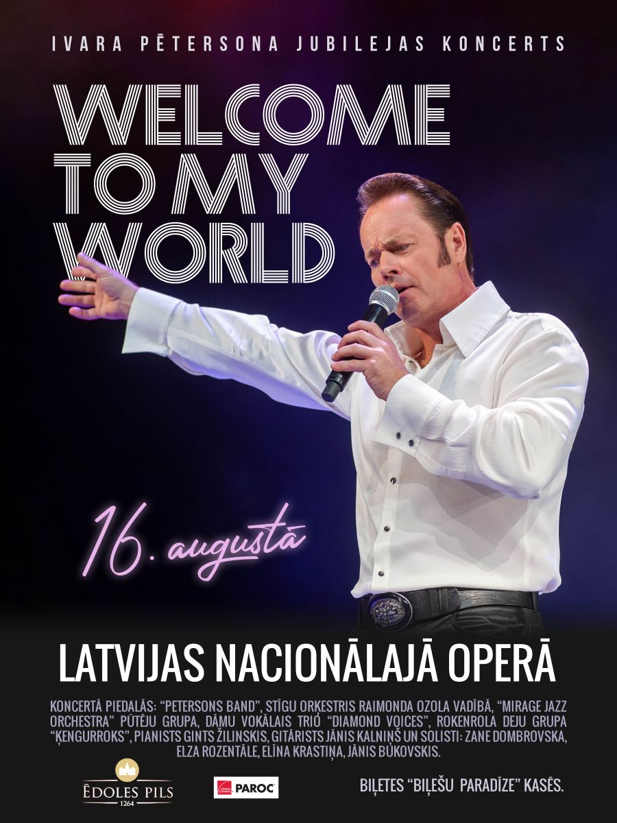 Mūziķis Ivars Pētersons šogad atzīmē 55 gadu jubileju. Tam par godu 16. augustā Latvijas Nacionālajā operā notiks vērienīgs koncertšovs “Welcome to My World”, kurā tiks izpildītas gan Ivara oriģinālkompozīcijas, gan populāri pagājušā gadsimta piecdesmito un sešdesmito gadu hiti – no romantikas apvītām mīlas balādēm līdz pat enerģijas pilnai rokenrola klasikai.
