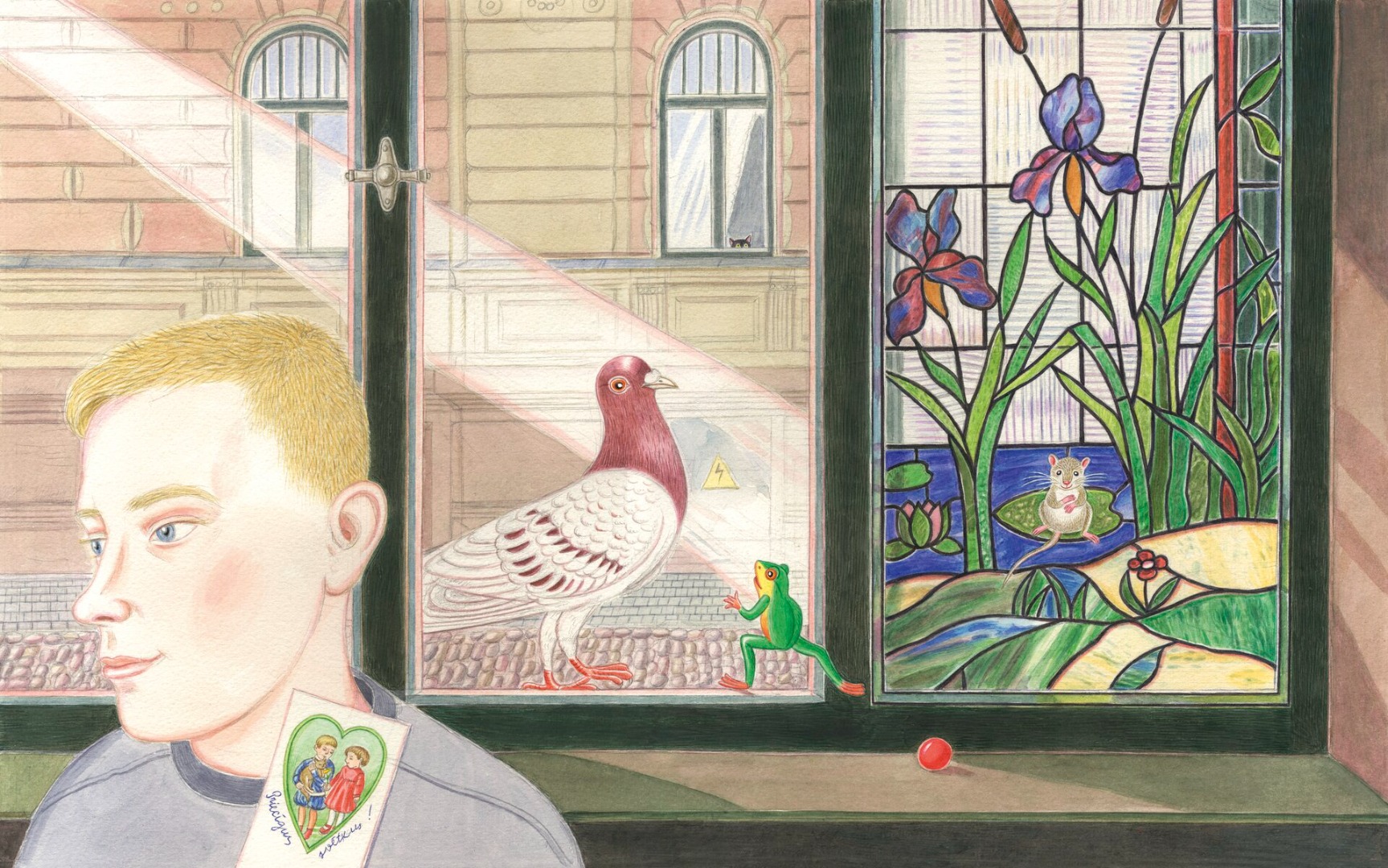 Izstādē apskatāmie zīmējumi veidoti kā ilustrācijas Māras Cielēnas grāmatai “Sfinksas Albertas smaids” un tajos attēloti Alberta ielas jūgendstila namu dekoros redzamie, vitrāžās atveidotie un ielā mītošo personību daudzveidīgie tēli.