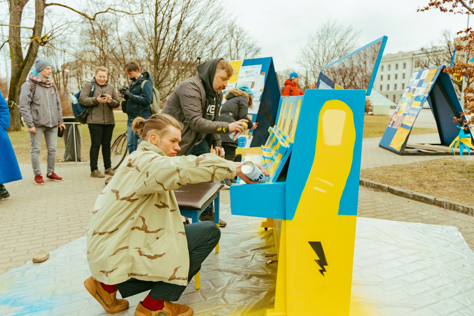 Sadarbībā ar Latvijas Mākslas akadēmiju mākslinieki Mārtiņš Aizpurvs un Mārtiņš Dziļums tās apzīmēja, iekļaujot Ukrainas karoga krāsas, lai klavieres būtu ne tikai skanīgs, bet arī vizuāls apliecinājums Ukrainas atbalstam, kļūstot par mākslas objektu, kas pats par sevi ir kā protests pret Krievijas agresiju Ukrainā.