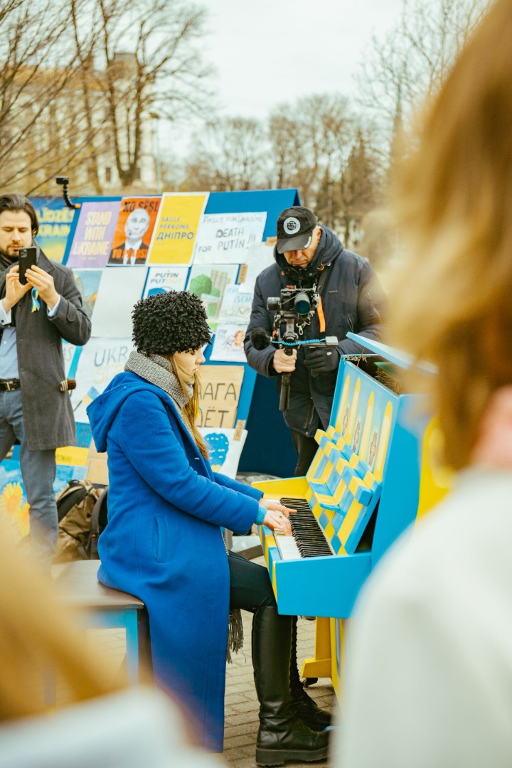 27. martā pēc mūziķes Katrīnas Gupalo iniciatīvas Kronvalda parkā, Rīgā, pretī Krievijas Federācijas vēstniecībai izvietotas klavieres "УКРАÏНА".