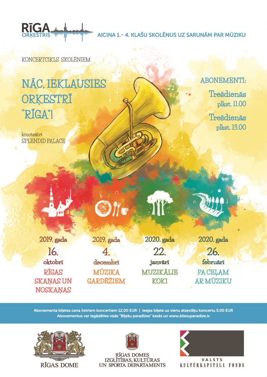 Cikla “Nāc, ieklausies Orķestrī RĪGA!” ietvaros notiks četras sarunas par mūziku. Tās ieteicamas pirmo četru klašu skolēniem un bērniem līdz 10 gadu vecumam.