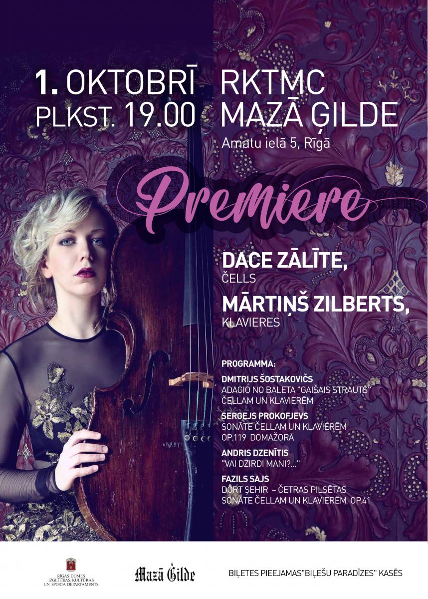 Otrdien, 1. oktobrī, plkst. 19.00 Rīgas Kultūras un tautas mākslas centrā “Mazā Ģilde” notiks jaunās koncertsezonas otrais kamermūzikas vakars. Savā pirmajā solo koncertā “Premiere” uz skatuves dēļiem kāps čelliste Dace Zālīte un pianists Mārtiņš Zilberts.