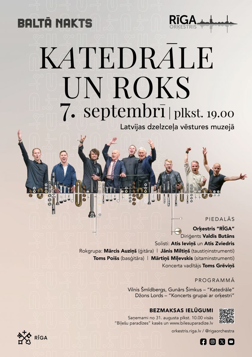 7. septembrī plkst. 19.00 Latvijas dzelzceļa vēstures muzejā Orķestris “Rīga” aicina uz jaudīgi skanīgu piedzīvojumu mūzikā “Katedrāle un roks”. Koncertā apvienosies Orķestra “Rīga” mūziķi, diriģents Valdis Butāns un rokgrupas sastāvs – dziedātāji Atis Ieviņš un Atis Zviedris, ģitārists Mārcis Auziņš, pianists Jānis Miltiņš, basģitārists Toms Poišs un Mārtiņš Miļevskis pie bungām. Koncertu vadīs Toms Grēviņš. Ieeja koncertā ar bezmaksas ieejas kartēm, kas saņemamas “Biļešu paradīzes” kasēs un www.bilesuparadize.lv no 31. augusta plkst. 10.00.