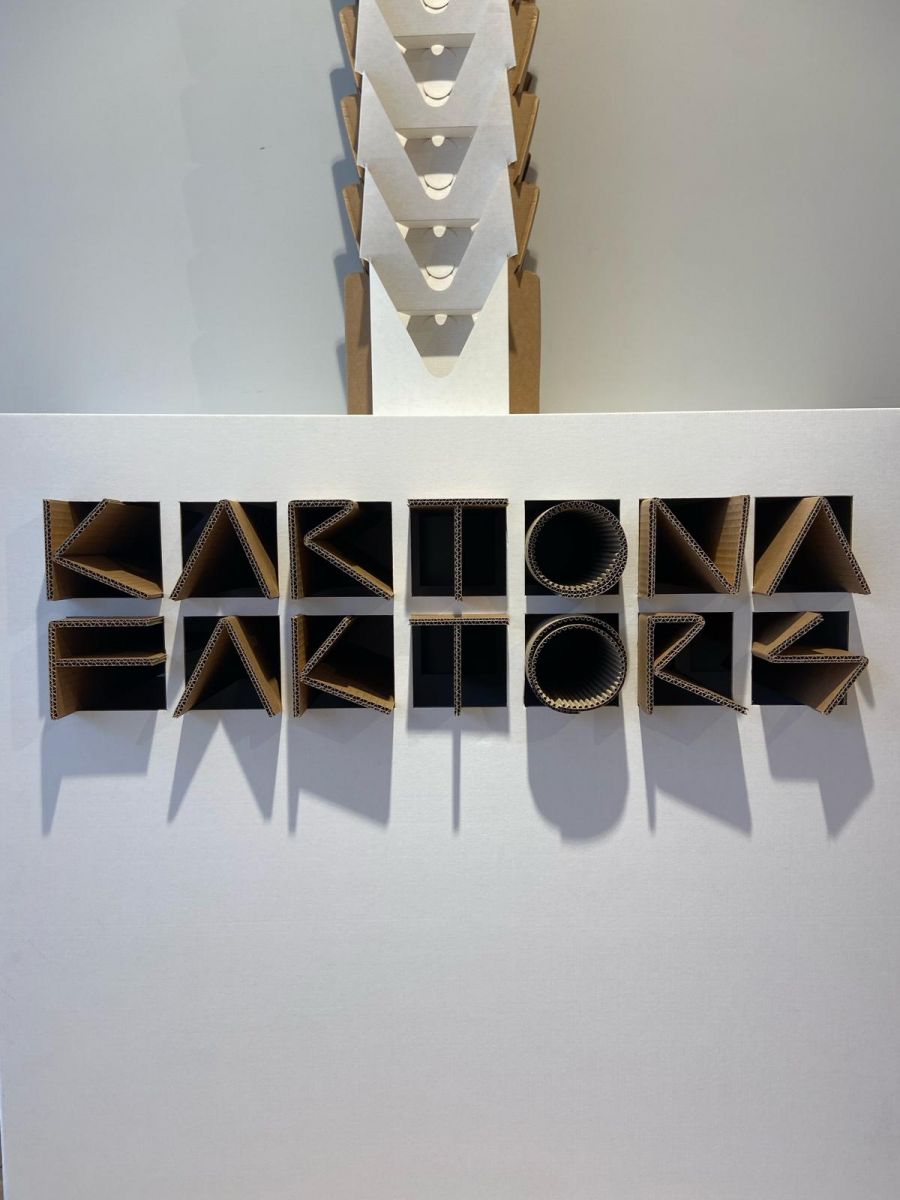 Kartons var asociēties ar kaut ko lētu, vienreizlietojamu, taru otrreizējai pārstrādei vai pat atkritumu. “Man kartons ir iespēja pievienot vērtību ne tikai praktiski, bet arī simboliski. Vadoties pēc principa “mazāk ir vairāk”, no vienas loksnes viļņotā kartona var iegūt galdu, plauktu vai ķebli, un pēc tam salocīt tos plakanus, ietaupot vietu (arī laiku). Tas mani iedvesmo!” papildina autors. “Viļņotais jeb gofrētais kartons ir arī praktisks, jo meistaram viegli to griezt, locīt, līmēt un skrūvēt. Mani kartons saviļņo ar savu “iekšējo saviļņojumu”: tas ir gan viegls gan izturīgs tāpēc, ka abas gludās papīra virsmas kopā salīmē viļņotā papīra slānis.”