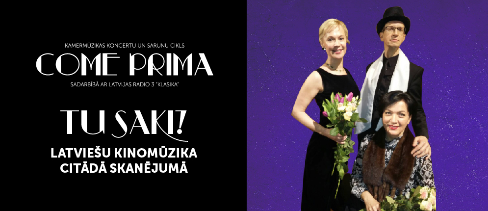 Krāšņi noslēdzot šī gada sezonu, 6. novembrī plkst. 19.30 VEF Kultūras pilī izskanēs jau 12. COME PRIMA koncertsērijas programma. Šoreiz sadarbībā ar Latvijas Radio 3 Klasika, ar Rīgas domes un Valsts Kultūrkapitāla fonda atbalstu dzirdēsim latviešu kinomūziku citādā skanējumā.