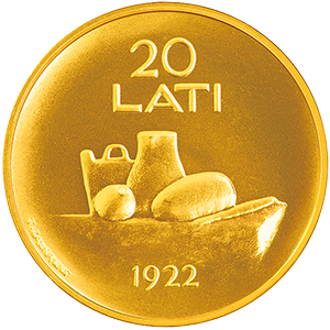 2. Latvijas monēta. Autors: Teodors Zaļkalns. Plastiskais veidojums: Ligita Franckeviča. 1922 / 2008. Zelta piemiņas monēta. Averss un reverss. Publicitātes foto Apbalvojumi: 2. vieta Krievijas numismātikas publikāciju izdevniecības “Water Mark” konkursā “Monētu zvaigznājs” (“Монетное созвездие”) nominācijā “Gada zelta monēta” (2009). Izdevuma “World Coin News” balvas nominācijā “Labākā zelta monēta” un “Gada monēta 2010” (2010).