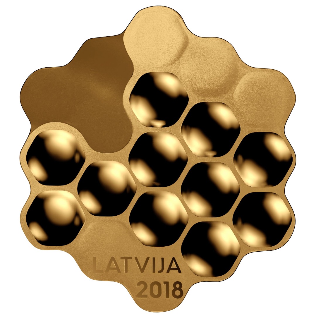 6. Medus monēta. Grafiskais dizains: Artūrs Analts. 2018. Averss un reverss. Publicitātes foto. Apbalvojumi: Gada monēta (“Coin of the Year”) “Active Interest Media” (AIM; ASV) organizētajā “Coin of the Year Awards” konkursā (2018). 2019. gada oktobrī COTY nomināciju komiteja atzina “Medus monētu” par vienu no pasaules 10 labākajām monētām nominācijā “Gada mākslinieciskākā monēta”.