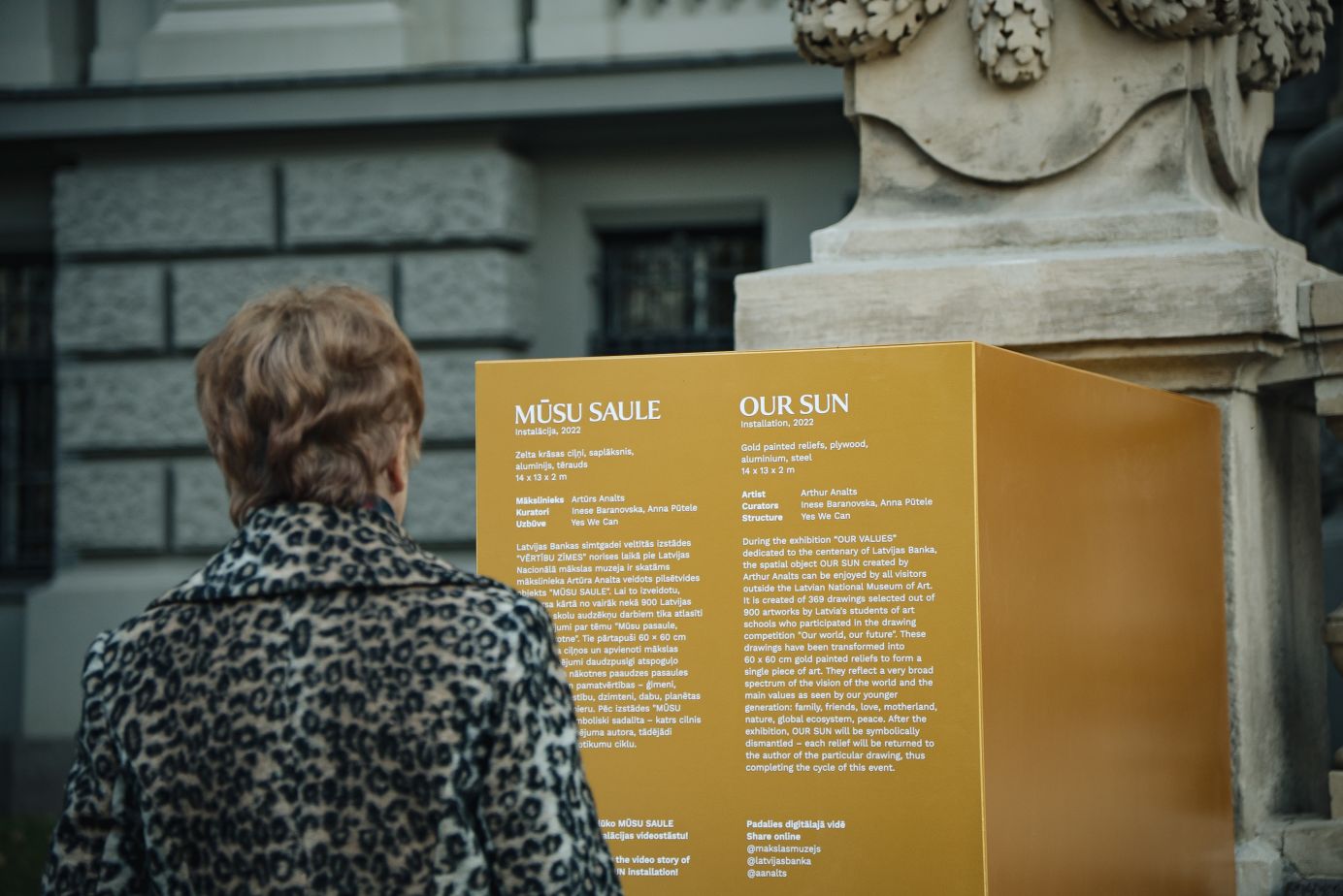 Paplašinātu dimensiju izstādei piešķir Artūra Analta speciāli radītā audiovizuālā instalācija “MŪSU NĀKOTNE” LNMM Kupola zālē un vērienīgais vides objekts “MŪSU SAULE” pie muzeja fasādes, kuru veido 369 bērnu un jauniešu zīmējumi, kas atlasīti īpaši rīkotā konkursā un atspoguļo mūsu valsts nākotnes paaudzes pasaules redzējumu un pamatvērtības – ģimeni, draugus, mīlestību, dzimteni, dabu, planētas ekosistēmu, mieru. Zeltītā diska forma asociējas ar monētu un sauli – cerības, dzīvības, mūžīgas kustības, iedvesmas un garīguma simbolu.