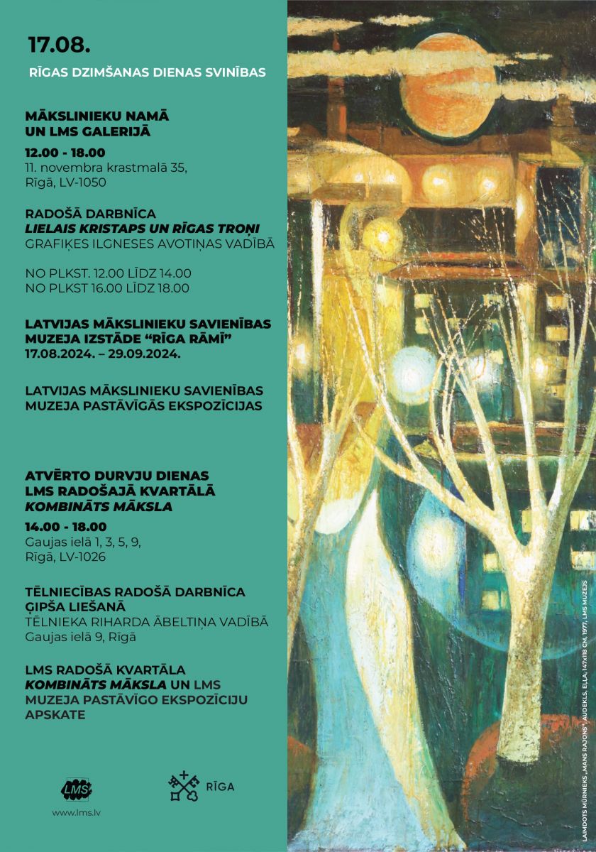 Izstādes ietvaros 17. augustā no plkst 12.00 līdz 14.00 un no plkst. 16.00 līdz 18.00 norisināsies radošās darbnīcas “Lielais Kristaps un Rīgas troņi” grafiķes Ilgneses Avotiņas vadībā, kur monotipijas un frotāžas tehnikās būs iespēja radīt savu mākslas darbu par Rīgas tēmu ar pilsētai raksturīgiem rakursiem un ritmiem. Pasākuma laikā no plkst. 12.00-18.00 būs atvērtas LMS muzeja glezniecības, grafikas, tēlniecības kolekciju pastāvīgās ekspozīcijas muzeja 3. stāvā. Ekspozīcijās apskatāma tādu nozīmīgu autoru kā Boriss Bērziņš, Jānis Pauļuks, Džemma Skulme, Maija Tabaka, Rūdolfs Pinnis, Helēna Heinrihsone, Gunārs Krollis, Dzidra Ezergaile, Juris Mauriņš, Bruno Strautiņš u.c. radošā daiļrade.