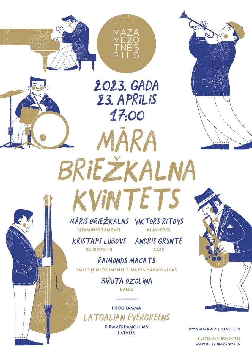 Šogad mūzika Mazajā Mežotnes pilī atsāks skanēt 23. aprīlī mājīgajā koncertzālē Lielupes krastā kopā ar Māra Briežkalna kvintetu, svinot pavasari, Starptautisko džeza dienu un kvinteta jaunā albuma Latgalian Evergreens izdošanu. Koncerts būs programmas "Latgalian Evergereens" pirmatskaņojums Latvijā.