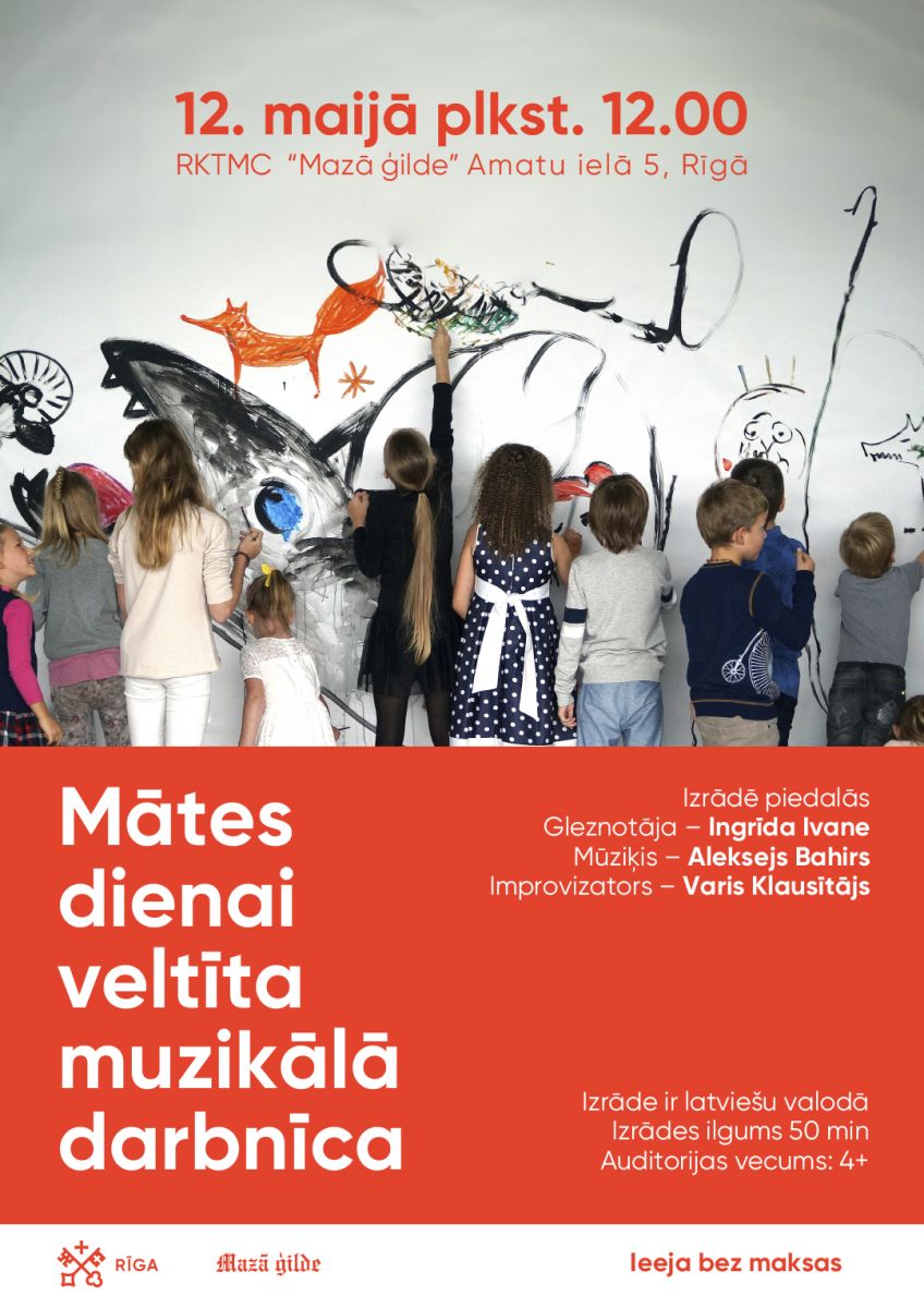 Atzīmējot Mātes dienu, kopā ar Zīmējumu teātri 12. maijā plkst. 12.00 RKTMC “Mazā ģilde” Lielajā zālē notiks īpaša māmiņām veltīta izrāde-improvizācija “Muzikālā darbnīca”.