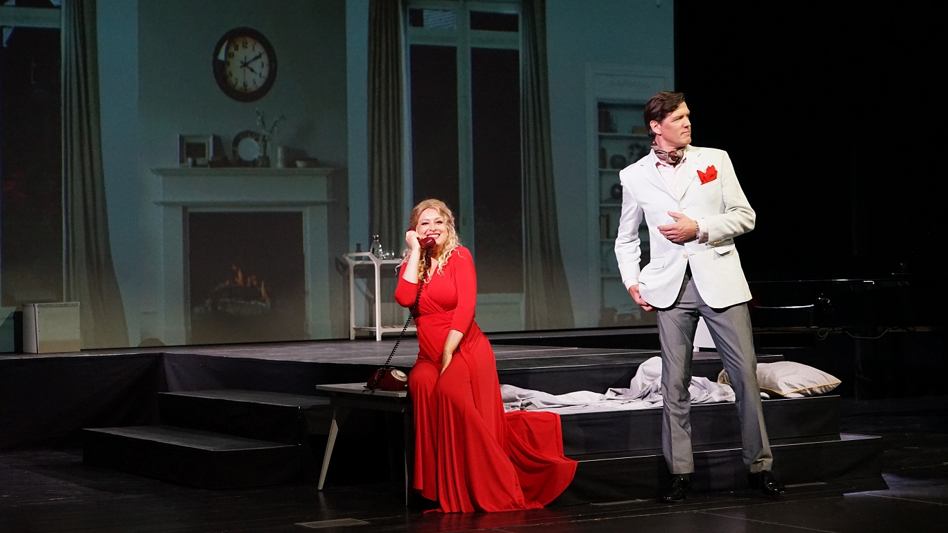 Atgādināsim, ka Džankarlo Menoti monoopera «Telefons» ir tapusi pagājušā gadsimta vidū, kad tehnoloģijas telefona veidolā ienāk aizvien vairāk mājās un kļūst par aizraujošu nodarbi mājsaimniecēm. Vieglā un komiskā stāsta galvenā varone Lusija ir tik aizņemta ar telefonsarunām, ka nepamana līgavaini, kurš atnācis viņu (Lusiju) bildināt. Pēc vairākām stundām bezcerīgas gaidīšanas viņam nekas cits neatliek, kā doties uz telefona būdiņu un bildinājumu izteikt pa telefonu. Savukārt Frensisa Pulenka monoopera «Cilvēka balss» ir eksistenciāli skaudrāka – iestudējums gan ar humoru, gan dziļi filozofiski atklāj sievietes jūtu, ilgu un domu pasauli, rosina pārdomas par dzīves vērtībām, jēgu un mums dotajām iespējām.