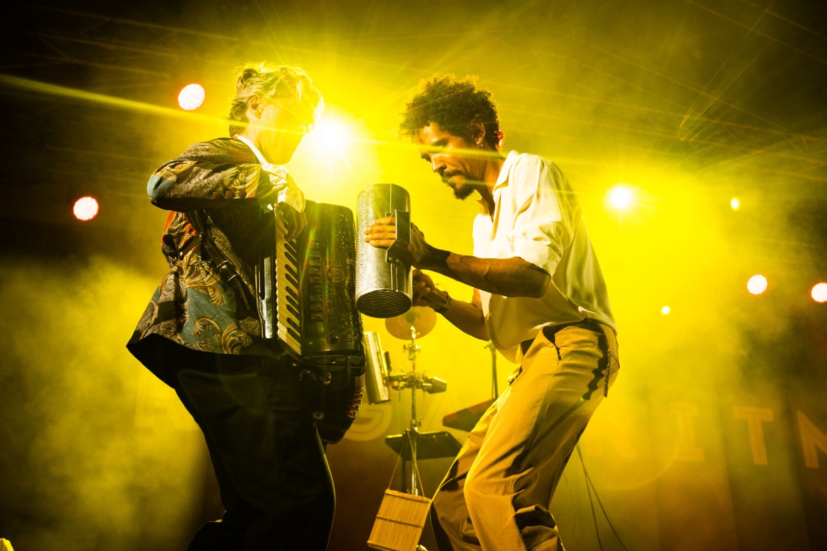 Par spilgtu skatuves šovu parūpējās starptautiskā globālās mūzikas apvienība “Ayom” no Portugāles, gan vizuāli, gan audiāli meistarīgi sajaucot kopā ietekmes no Brazīlijas, Āfrikas un Vidusjūras valstu muzikālajām tradīcijām. Kolorītākā grupas “Ayom” dalībniece ir tās vadītāja – vokāliste un perkusioniste Jabu Morales, kura koncerta beigās nodemonstrēja galvu reibinošus brazīļu frevo dejas stila trikus, bet uzstāšanās dienas rītā Latvijas Radio 1. studijā kopā ar kolēģiem sniedza arī ekspresīvu meistarklasi Latvijas mūzikas studentiem.