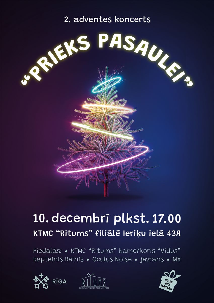 Koncerta norises laiks un vieta: 2023. gada 10. decembris plkst. 17.00, Kultūras un tautas mākslas centra "Ritums" filiālē Ieriķu ielā 43A, Lielā zāle (4.stāvs, ir pieejams lifts).