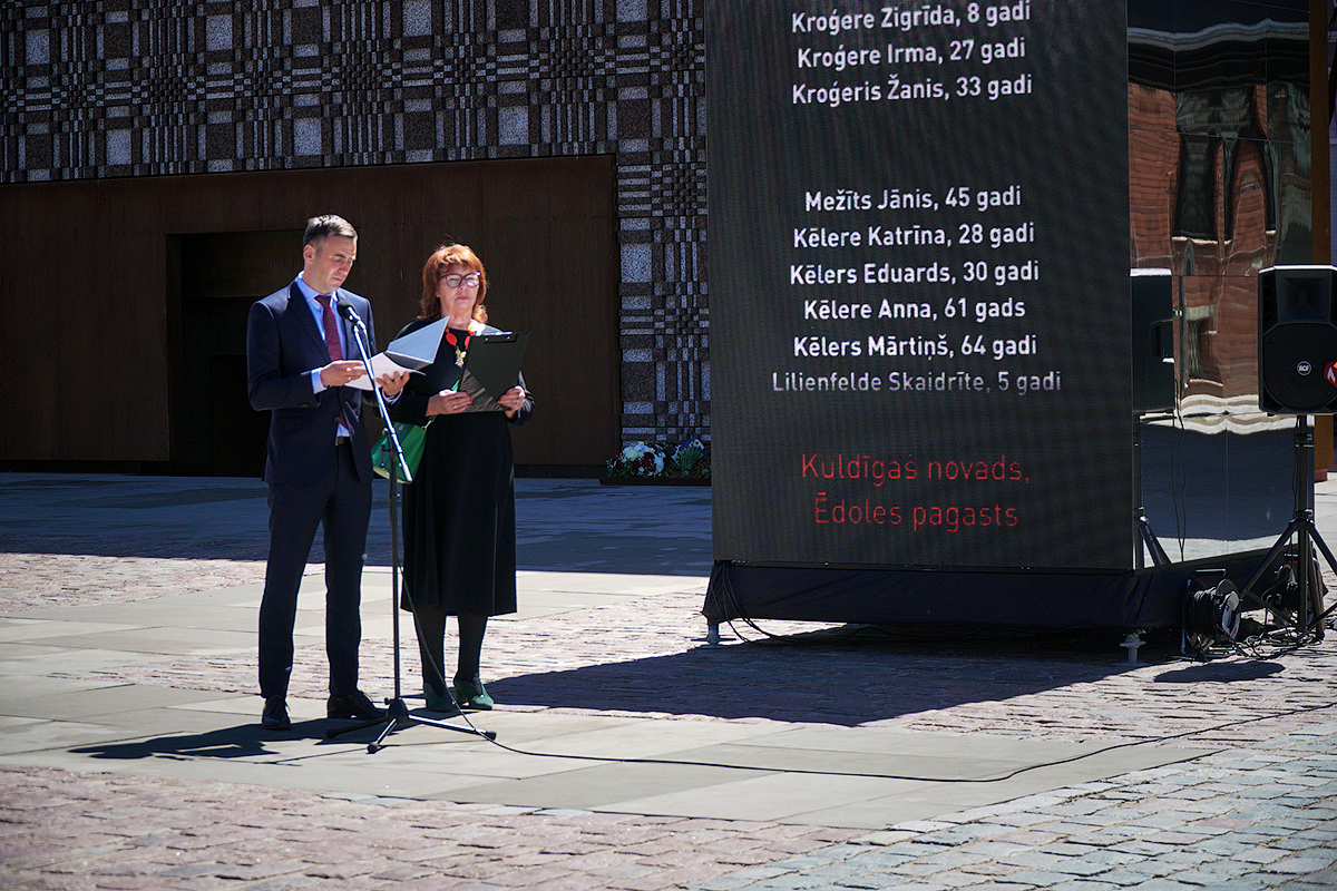 Rīgas domes priekšsēdētājs Mārtiņš Staķis kopā ar deputāti, filmas “Sibīrijas bērni” režisori Dzintru Geku-Vasku, pieminot 1941. gada deportāciju upurus, nolika ziedus pie Brīvības pieminekļa un Komunistiskā terora upuru piemiņas vietā Torņakalnā. Šeit pilsētas mērs tikās arī ar savulaik noziedzīgi deportētajiem cilvēkiem, kuri dalījās ar atmiņām.