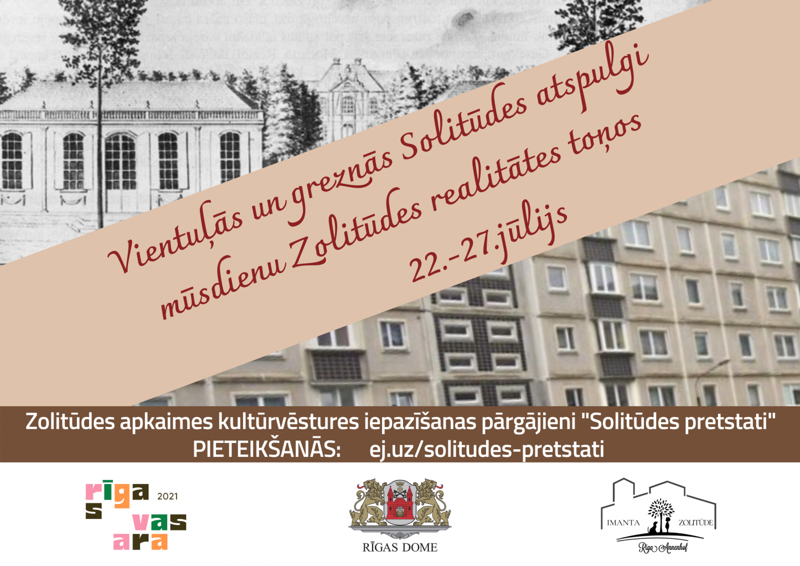 Kultūrvēsturiski izglītojošie Zolitūdes pārgājieni klātienē norisināsies no 22. jūlija līdz 27. jūlijam. Obligāta iepriekšēja pieteikšanās, aizpildot anketu: ej.uz/solitudes-pretstati.