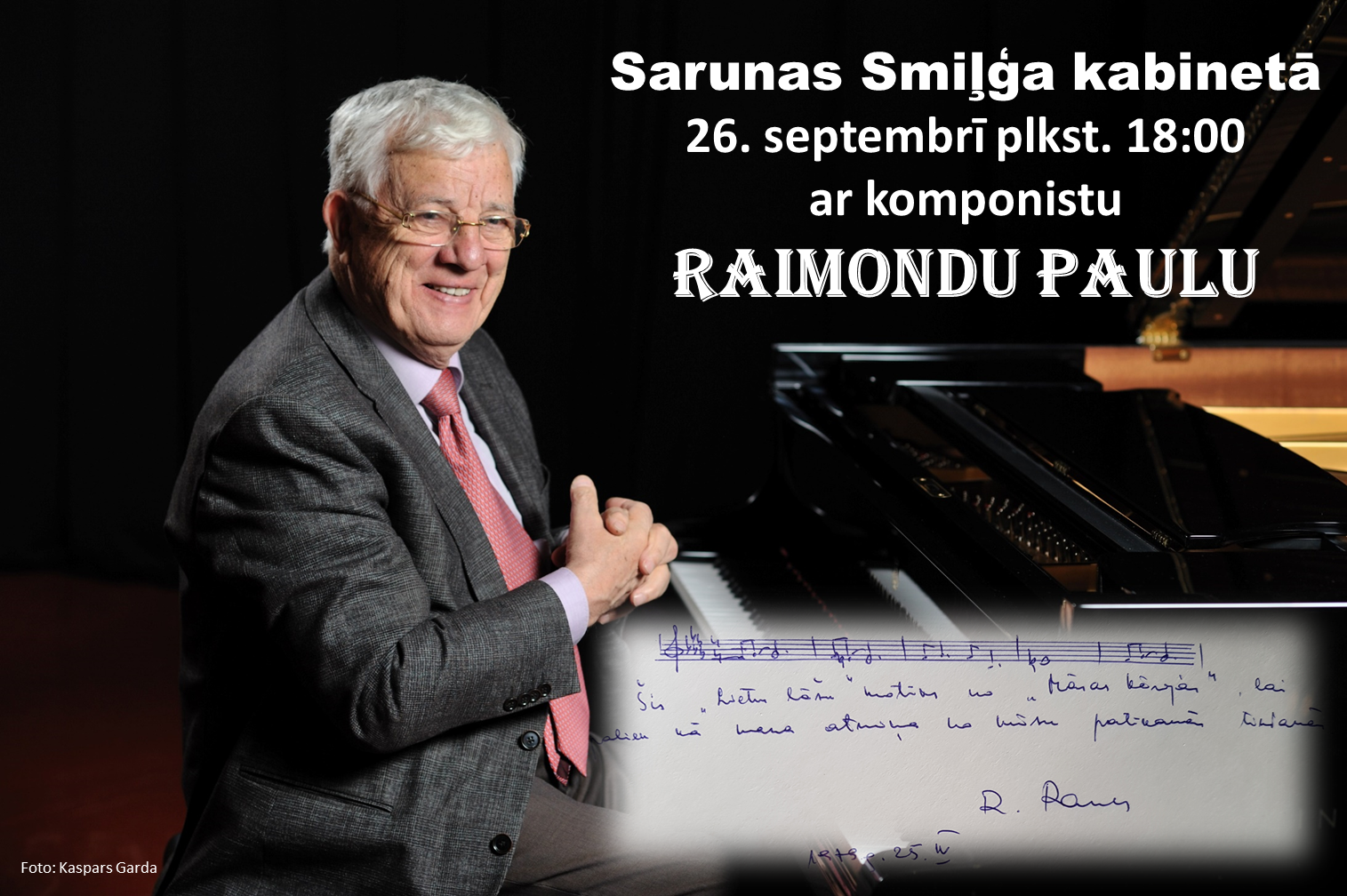 Latvijas Kultūras akadēmijas Eduarda Smiļģa Teātra muzejā 26. septembrī plkst. 18.00 tradicionālajās “Sarunās Smiļģa kabinetā” tiksimies ar Raimondu Paulu.