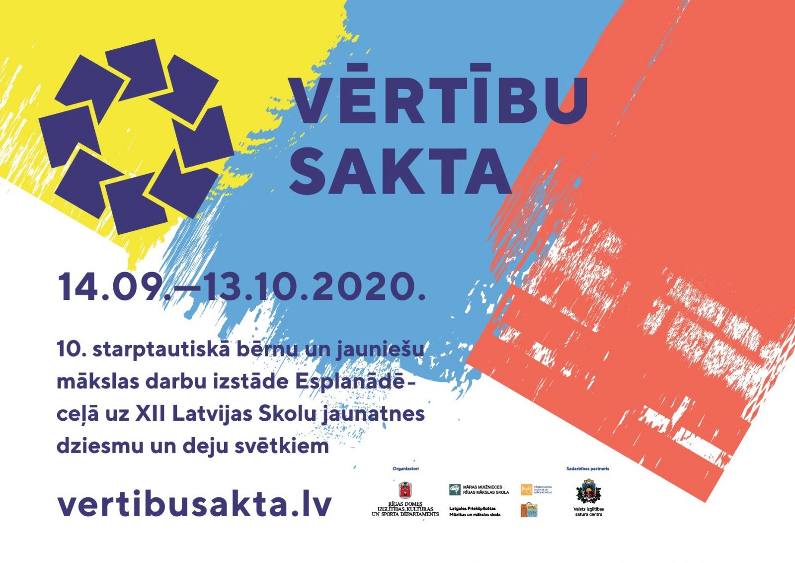 Pirmdien, 14. septembrī, plkst. 14.00 Rīgā, Esplanādē pie Raiņa pieminekļa atklās starptautisko bērnu un jauniešu mākslas izstādi “Vērtību sakta”, kas, sākoties jaunajam mācību gadam, ir būtisks pieturas punkts ceļā uz XII Latvijas Skolu jaunatnes dziesmu un deju svētkiem. Izstādes atklāšanā piedalīsies tās organizatori, atbalstītāji, bērni un jaunieši – darbu autori.