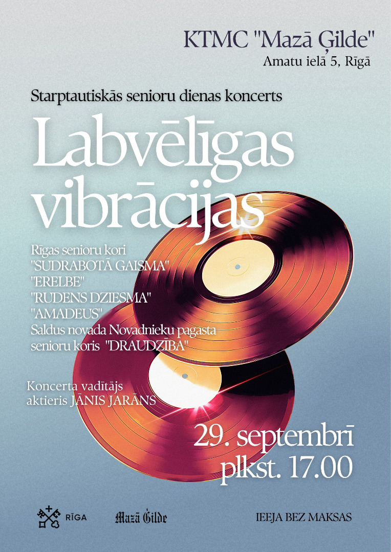 29. septembrī plkst. 17.00 KTMC “Mazā ģilde” aicinām uz Starptautiskajai senioru dienai veltītu koncertu “Labvēlīgās vibrācijas”.
