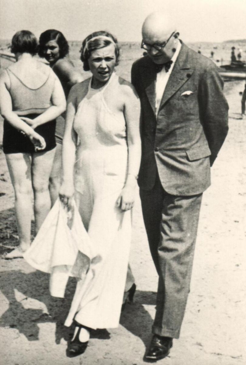 Publicitātes foto no muzeja krājuma - A. Čaks ar sievu Annu Ēriku Elizabeti Bērziņu Jūrmalā (AČMD F/611)