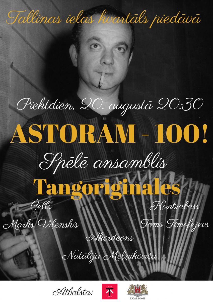 Plašāka informācija par biļetēm un apmeklējumu: https://www.tallinasielaskvartals.lv/tango-muzikas-koncerts-astoram-100/
