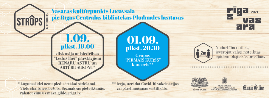 Vasaras kultūrtelpas Lucavsala aktivitāšu noslēgumā 1. septembrī plkst. 19.00 RKTMC “Mazā Ģilde” organizē diskusiju ar biedrības “Lucavsalas Ledus Lāči” pārstāvjiem Renāru Astru un Artūru Aukonu par aukstumpeldēm un to ietekmi uz veselību. Pēc diskusijas plkst. 21.00, atzīmējot Zinību dienu, uzstāsies grupa “Pirmais Kurss”.