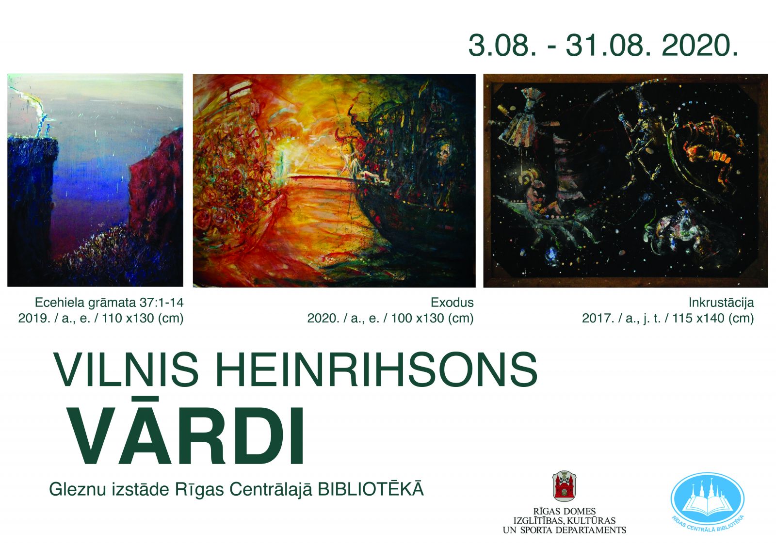 Līdz 31. augustam Rīgas Centrālās bibliotēkas izstāžu zālē (Brīvības ielā 49/53, 2.stāvā) apskatāma mākslinieka Viļņa Heinrihsona gleznu izstāde “Vārdi”.