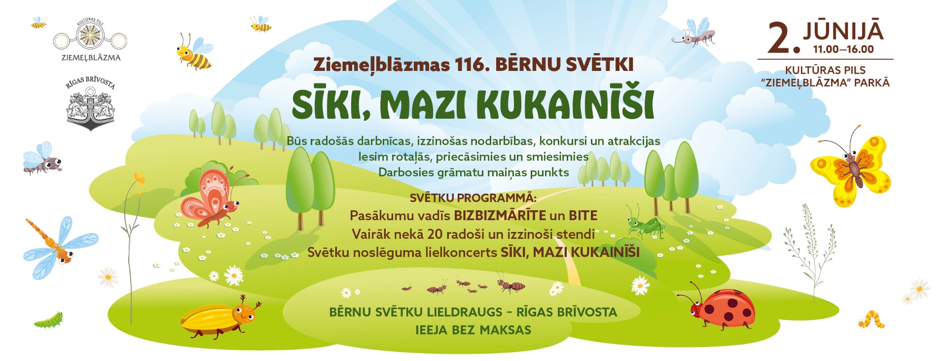 Ziemeļblāzmas 116. Bērnu svētku “Sīki, mazi kukainīšī” apmeklētājiem būs iespēja piedalīties dažādās radošajās, izglītojošajās un izklaidējošajās darbnīcās, kas norisināsies gandrīz divdesmit nodarbību stendos: